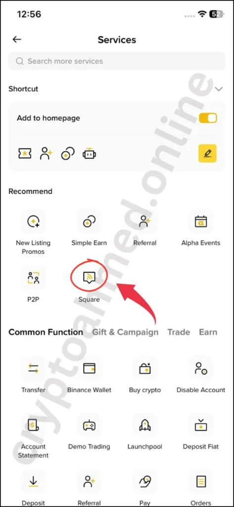 On this page, you’ll see several options, including Trading Bots. Look for the “Square” section, or simply use the search bar to find it quickly.