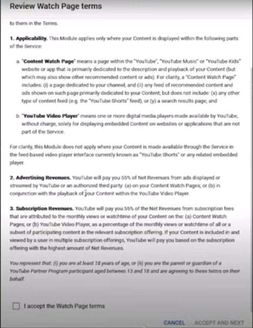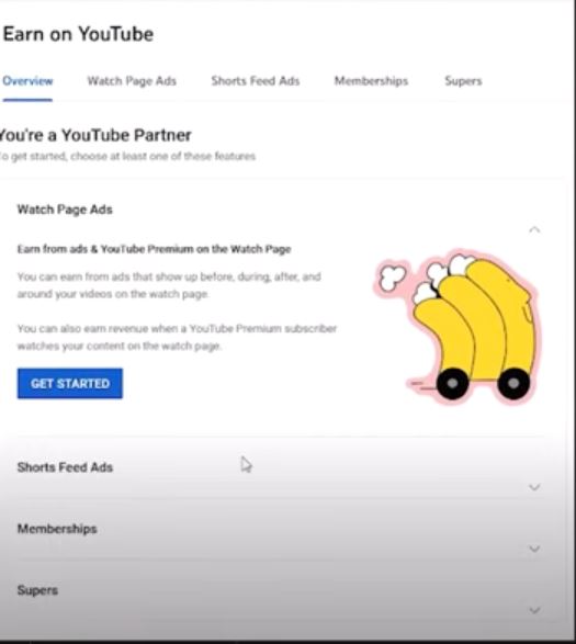 Once your channel is monetized, you need to click on the “Settings” Icon in YouTube Studio, which will be located in the left corner. After accessing this section, you will find a “Get Started” blue icon. Click on this icon and After Open the New Page Check On A small Box and Click On Accept and Next . This will allow ads to run on your videos, and you will be able to start earning through YouTube.